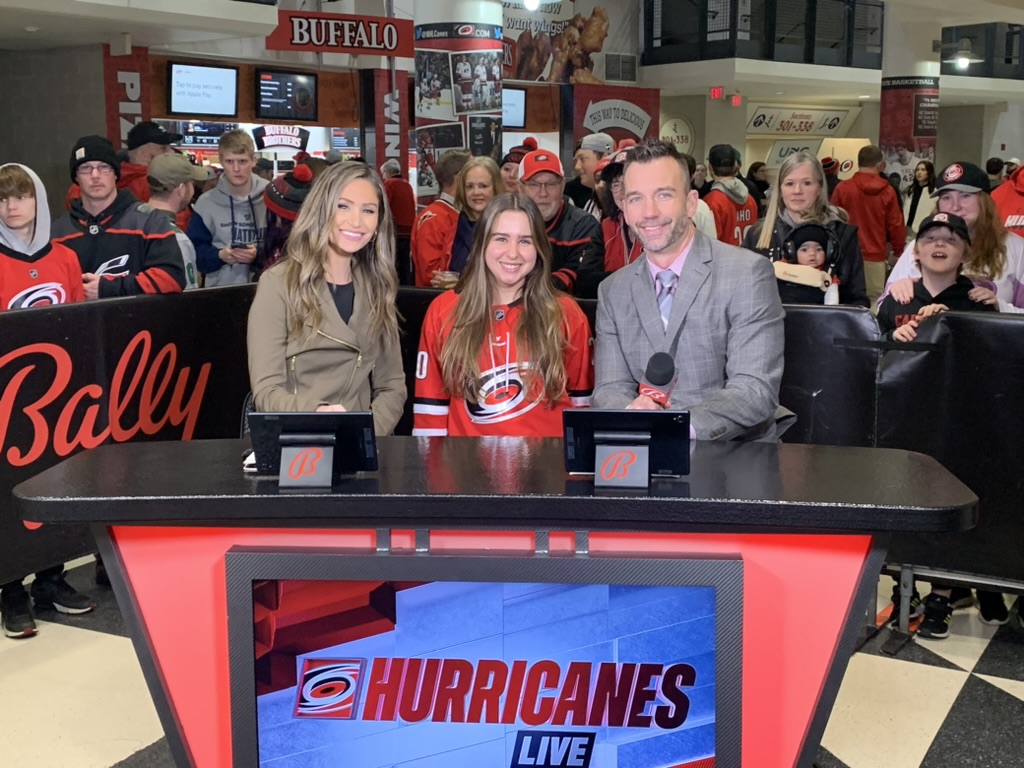 I have always loved both participating in and watching sports. I remember being five years old, sitting in my PJs at 6:00 a.m. watching my brother and his teammates play hockey. I knew all the players on my brother’s team, their positions, numbers, nicknames, and favorite foods. I found myself falling in love with hockey, determined to attend and learn from each game. My love for the game eventually transitioned to watching the Carolina Hurricanes. I enjoyed watching the professional games and I soon realized that my favorite moments were when the broadcasting team would make me feel connected to the players, just like the connection I had to my brother’s teams.